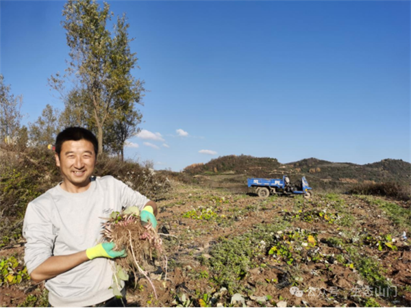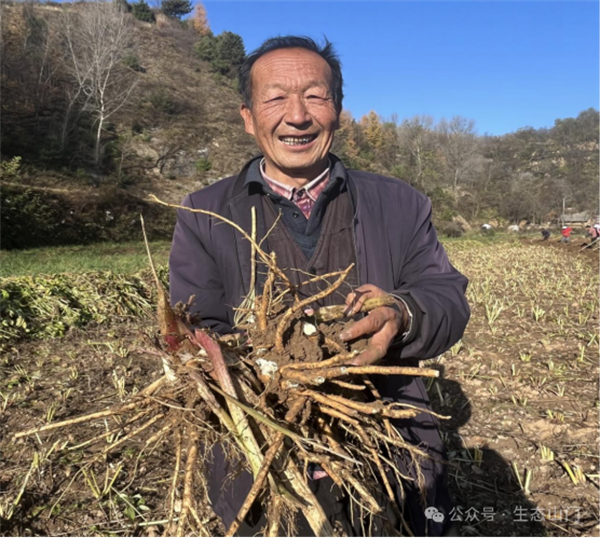 走进山门村中药材种植基地,一派繁忙而喜悦的收获景象,采收机在田间地头忙碌穿梭,伴随着机器的轰鸣声,一根根中药材破土而出,药农们紧跟其后,抖土、采收、分拣,脸上洋溢着丰收的喜悦。
