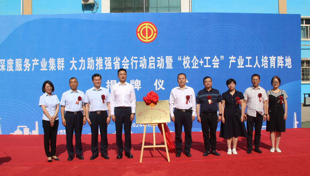 图为今年启动的“校企+工会”产业工人培育阵地揭牌仪式
