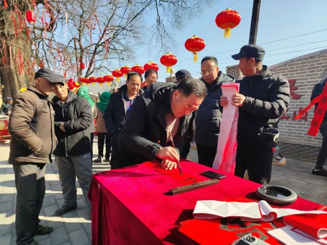 活动在一场墨香四溢的写春联活动中拉开序幕。村里的书法爱好者们齐聚一堂,红纸铺展,饱蘸浓墨的毛笔在纸上挥洒自如。“金蛇贺岁家昌盛,紫燕报春福满堂”“喜居宝地千年旺,福照家门万事兴”……一副副寓意吉祥的春联带着清新墨香诞生。村民们围在四周,有的帮忙抻纸,有的认真欣赏,挑选着自己心仪的春联。孩子们好奇地看着书法创作过程,眼中满是对传统文化的向往。