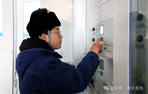 在开关站电力控制室,电力工作人员逐一排查调试,全力做好电力服务保障,确保企业生产线顺利生产。
