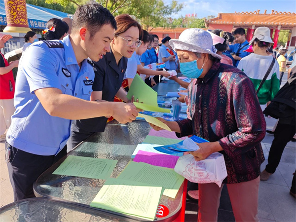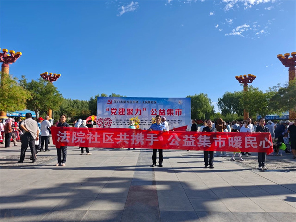 8月1日,为纪念中国人民抗日战争暨世界反法西斯战争胜利80周年,弘扬拥军优属优良传统,玉门法院积极参与社区组织的“同庆八一颂军魂·党建聚力惠民生”公益集市暨庆“八一”主题活动,以法治力量为军人军属送上节日关怀。