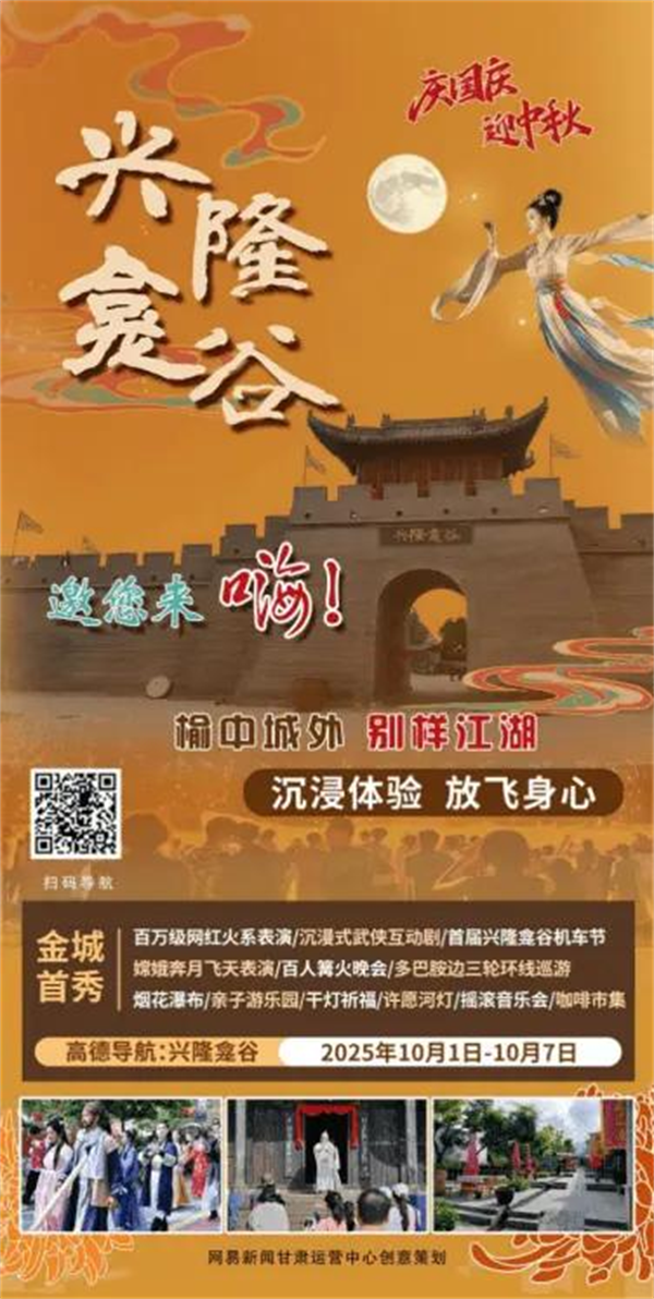 为推动榆中县和美乡村建设与农文旅深度融合,由网易甘肃创意策划的 “兴隆龛谷,山河共舞” 农文旅融合系列活动,将于 2025 年 10 月 1 日至 7 日在兴隆龛谷景区隆重举行。活动特邀中国达人秀全国八强 —— 深圳阎家班非遗火系表演团等顶尖机构加盟,推出十余项兰州首秀文旅体验,为市民游客打造兼具情感温度与视觉冲击的双节盛宴,助力榆中乡村振兴再添新动能。