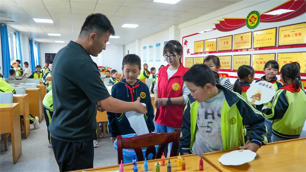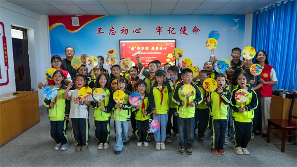 “看我做的扇子!蓝色和金色混在一起,就像银河里的星星一样!”活动现场,孩子们兴奋地展示着自己的作品。