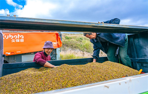 望着满载荞麦的农用车从田间驶过,村民关玉明喜悦地说道:“我家亩荞麦长势好、颗粒饱,亩产预计能到200公斤!”