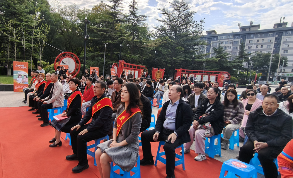 随后,文明的倡议化作了生动的互动。市民们在台上接力说出文明用语,那些朴素的“请” “谢谢” “对不起”,此刻听来,竟是城市最动听的音符。