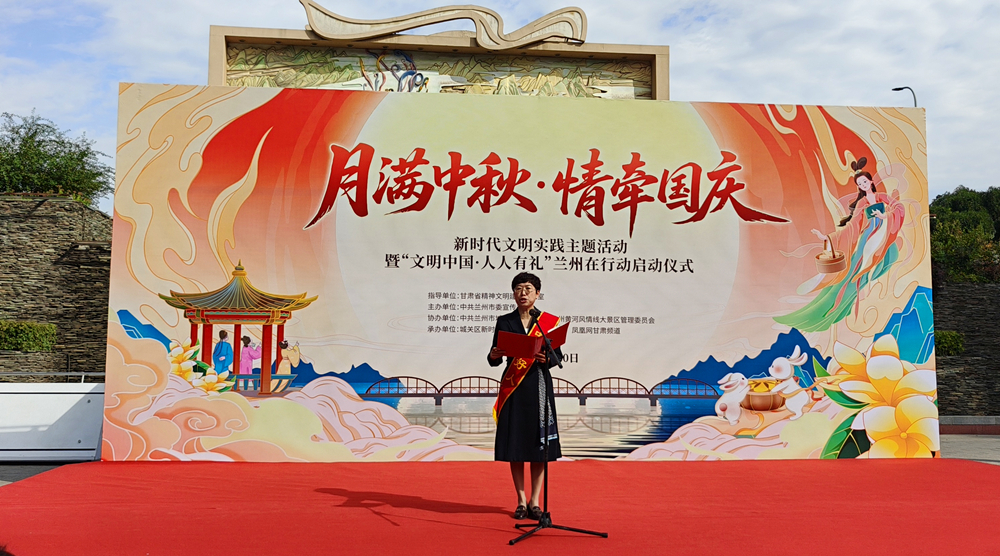 9月30日,一场名为“月满中秋·情牵国庆”的文明盛会,在兰州母亲河畔的市民公园举行,活动由甘肃省精神文明建设办公室指导,兰州市委宣传部主办,城关区新时代文明实践中心办公室、凤凰网甘肃频道承办。活动中,兰州市文明办发起了《文明中国 人人有礼》倡议书,活动用文艺节目和互动方式,给“双节”增添了欢乐的气氛。“中国好人”代表季春晖、鲁奕江、冯卫民,“兰州好人”代表魏叶青、常安绥、张满心、刘萌萌、朱家辉和兰州市文明办,城关区、七里河区、西固区、安宁区新时代文明实践中心负责人参加活动,开启了“文明火炬传递仪式”。