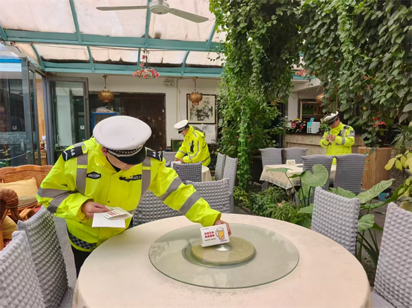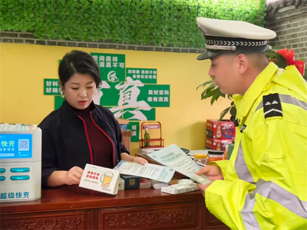 针对农家乐、民宿的经营属性,民辅警还向负责人发出倡议,邀请其主动加入“酒驾劝阻者”队伍:在顾客用餐时及时提醒“酒后禁驾”,发现有顾客酒后欲驾车的情况第一时间劝阻,从用餐末端筑起一道坚实的交通安全防线。