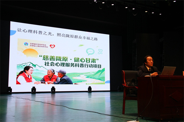 10月14日,由甘肃省科协指导、甘肃省心理咨询师学会实施的“慈善陇原・健心甘肃”社会心理服务科普行动项目,在兰州现代职业学院学术报告厅正式举行。甘肃省“慈善甘肃・全民健心”项目组成员、该校教职工及学生代表共 700 余人参会,报告会由兰州现代职业学院理工学院副院长李军教授主持。