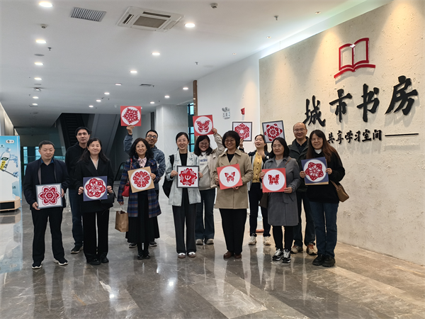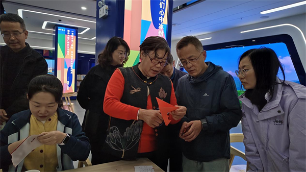活动参与者还参观了榆中县城市书房,并在剪纸非遗传承人董水花老师的指导下,亲身体验了非遗剪纸技艺。董老师从基础折纸讲起,耐心讲解运剪要点,指导大家的手势和动作,将非遗剪纸“千刻不落、万剪不断”的精髓倾囊相授。