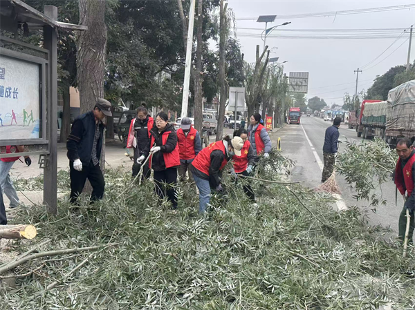干部带头“梳妆”,家园颜值焕新彩。面对镇区环境治理的“痛点”与“堵点”,镇政府精准锚定主街道整治任务,组织全体机关干部下沉一线,重点对树木枝叶遮挡交通标识、缠绕电线等安全隐患进行科学修剪清理,让街道在“清爽整洁”之余,更保障了“安全通畅”。行动中,工作人员借助高空作业车进行林木修剪。一组专人负责交通疏导,筑牢安全防线;另一组则及时清运枝叶,确保现场井然有序。这一举措不仅立竿见影地提升了街道的“颜值”与“安全值”,更有效激发了群众参与环境治理的主动性,让“共建共治共享”的理念日益深入人心。