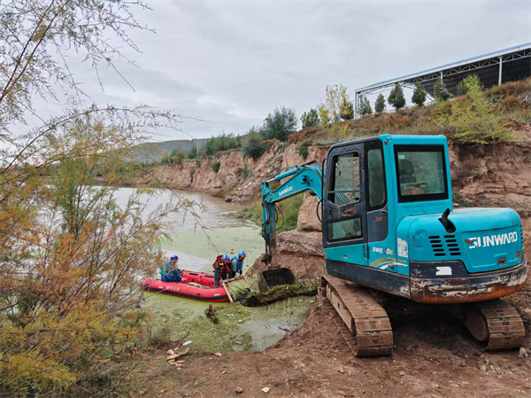 三级协同攻坚,生态底色绘新卷。针对宛川河流域甘草店段存在的沙坑淤积、浮萍滋生、垃圾漂浮等顽疾,镇政府统筹镇村干部、公益性岗位人员合力攻坚,按照“先易后难、分步推进”的策略,层层压实责任,确保治理工作环环相扣、落实到位,助力河道逐步“清淤焕活、重焕生机”。每日利用无人机航拍跟踪进度,确保治理无盲区;同时,精准调配船只机械,党群同心,身着红马甲,或徒手、或借助工具清理河道,以“冲锋姿态”推进流域治理。截至目前,已累计发动群众400余人次,清理河道7公里、各类垃圾70余吨;并在关键点位安装护栏120米、警示牌15个、监控摄像头6个,流域生态功能显著恢复,“水清、岸绿、景美”的画卷正徐徐展开。