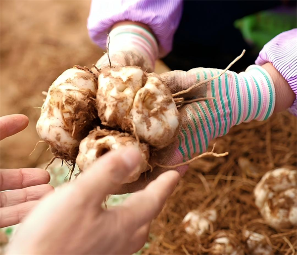 谈及今年的收益,魏万高语气里满是期待:“今年行情不错,地头的收购价毛的能到18块到20块一斤,算下来种百合的收入还很好呢。”田埂边,已经装箱的百合堆成小堆,等待收购商上门,这些带着泥土清香的“土疙瘩”,如今成了农户们实实在在的增收“金宝贝”。
