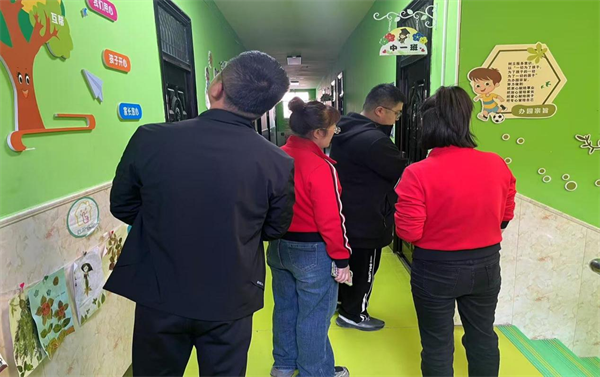 检查人员对幼儿园进行安全检查