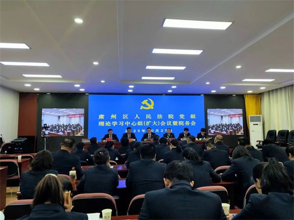 10月27日,肃州区法院召开党组理论学习中心组(扩大)会议。党组书记、院长段利军主持会议并讲话,党组成员、科级干部及全体员额法官参加会议。