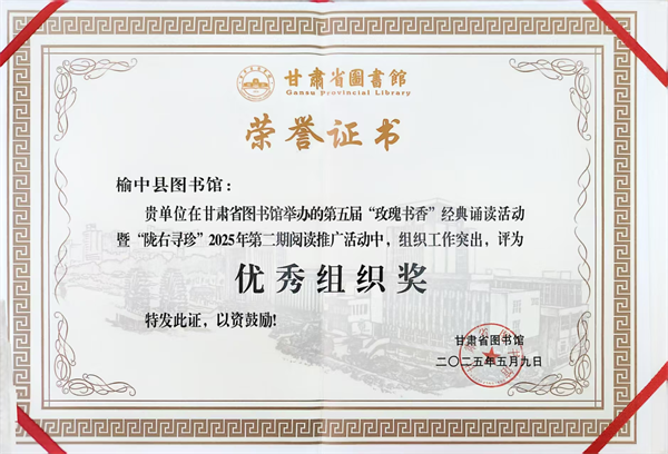 值得一提的是,在阅读推广领域,榆中县图书馆再添荣誉。因在2025年第五届“玫瑰书香”经典诵读活动中组织得力,该馆获评“优秀组织奖”。这是继第三届“陇原儿女读甘肃”活动后,该馆再次在阅读推广类评选中获此殊荣,连续获奖的背后,是其多年来深耕全民阅读、创新活动形式的持续努力。