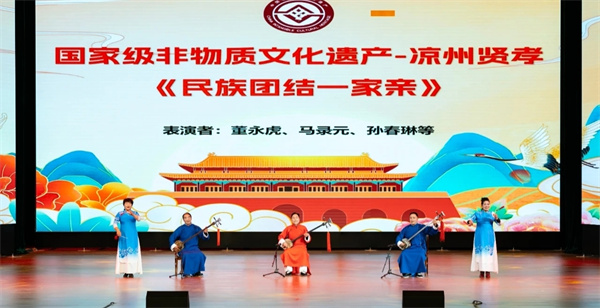 整场演出汇聚了来自全省14个市州精选的15个非遗展演项目,既有浓郁的地方特色,又融入了时代审美与情感表达。陇中小曲《唱一首小曲心头暖》以高亢嘹亮的腔调、豪迈奔放的气势,唱出了陇原儿女坚韧不屈的意志和对美好生活的真诚向往;凉州贤孝《民族团结一家亲》则凭借质朴深情的唱腔和真挚温暖的叙述,展现了各族人民守望相助、和睦共进的动人图景。此外,还有来自临夏的花儿联唱、天水的秦州唢呐、平凉的崆峒武术等节目轮番登场,形成了一场精彩纷呈、内涵丰富的文化盛宴。每一个非遗项目都承载着兄弟市州的文化底蕴和美好祝愿,展现了甘肃非遗的持久魅力与时代活力,也传递出全省非遗保护领域工作人员、传承人与受灾地区群众心手相连、共筑美好的深情厚谊。