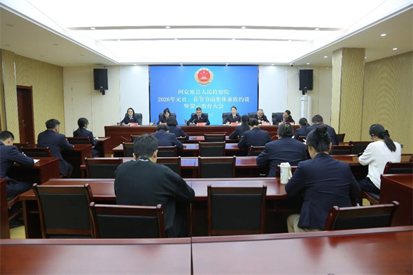 为巩固拓展深入贯彻中央八项规定精神学习教育成果,筑牢检察人员廉洁自律思想防线,营造风清气正的节日氛围,12月30日,阿克塞县人民检察院召开2026年元旦、春节节前集体廉政约谈暨警示教育大会。检察长候选人方勇作节前廉洁纪律提醒并开展党风廉政建设集体谈话,院党组成员及全体干警参加会议。