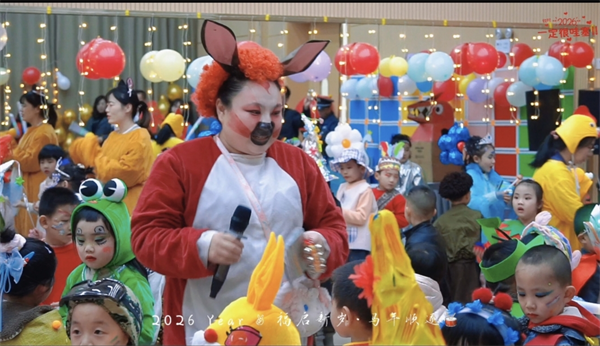 活动在榆中县城乡居幼儿园二楼音乐大厅热烈开展,现场装扮绚丽、童趣盎然。孩子们身着各式创意服装,踏上舞台,伴随着欢快的音乐尽情舞动,处处洋溢着新年的喜悦。