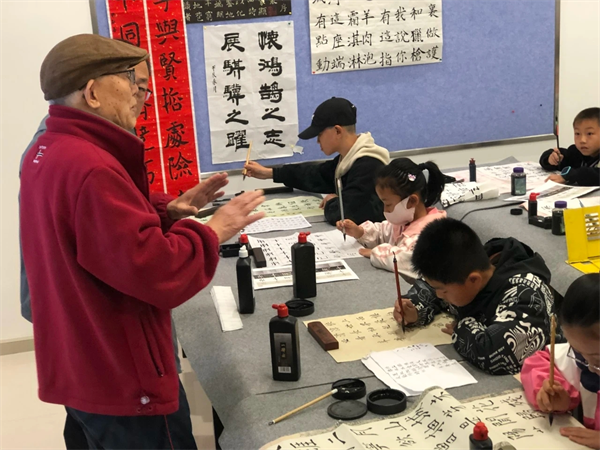榆中籍著名书法家桑作楷在美育中心给孩子们指导书法