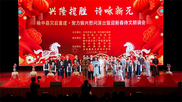 1月18日,“兴隆揽胜 诗咏新元——榆中县灾后重建·聚力振兴慰问演出暨迎新春诗文朗诵会”在榆中县文化艺术中心剧场成功举办。