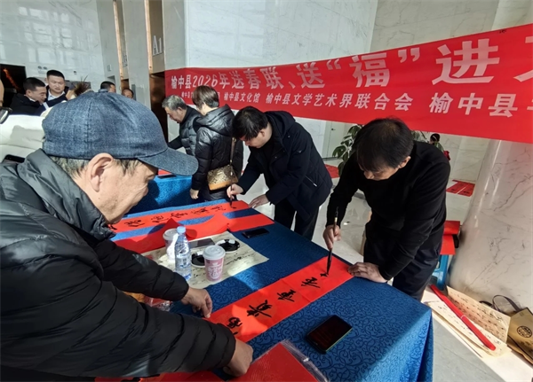在迎春写赠春联区,随着多位书法家挥毫泼墨,一副副写满祝福、喜庆、欢乐、吉祥的春联,散发着墨香的大红春联展现在人们眼前,红红的春联、浓浓的墨香,寄托着人们对即将到来新年的憧憬和向往,同时也送去了党、政府和工会对群众的关怀和祝福。