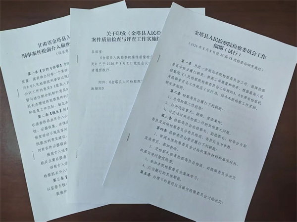 紧扣“案件质量评查”部署,创新构建“专业化+常态化+全流程”案件质量管控机制。审议通过《金塔县人民检察院案件质量检查与评查工作实施细则(试行)》,成立由院领导牵头的专门领导小组及评查组,建立“评查-反馈-整改-复查-通报” 五步闭环机制,对标市院“每案必评”要求,实现重大疑难案件、新类型案件、群众关注度高案件评查全覆盖。同步完善案件流程监控机制,依托智慧检务平台,对案件受理、办理、审结等环节实行节点管控,将“五精”(事实认定精准、法律适用精确、办案程序精细、文书制作精良、办案效果精实)办案标准嵌入流程各节点,确保每一起案件经得起法律、历史和人民的检验。配套出台《金塔县人民检察委员会工作细则(试行)》,健全重大案件集体讨论机制,为案件质量提供刚性保障,以精准评查、严格管控践行“高质效办好每一个案件”的核心追求。