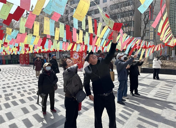 白天的健身广场热闹非凡,2月28日,元宵灯谜竞猜活动在此火热开展。现场悬挂起千余条彩色灯谜,涵盖党史知识、传统文化、生活常识、成语俗语等多个领域,兼具知识性与趣味性。白发老者凝神揣摩,年轻人互相探讨,小朋友在家长陪伴下认真思考,猜中谜底的群众领取奖品时,脸上洋溢着满满的喜悦。这场日间的文化盛宴,让群众在互动中感受汉字魅力,体会传统习俗的乐趣,更彰显了榆中县积极向上的精神风貌。在榆中县夏官营镇高墩营村举办的“我们的节日·元宵”主题文化文明实践活动中,孩子们动手制作灯笼、猜灯谜,感受传统手工艺的乐趣,在益智游戏中收获知识与快乐。