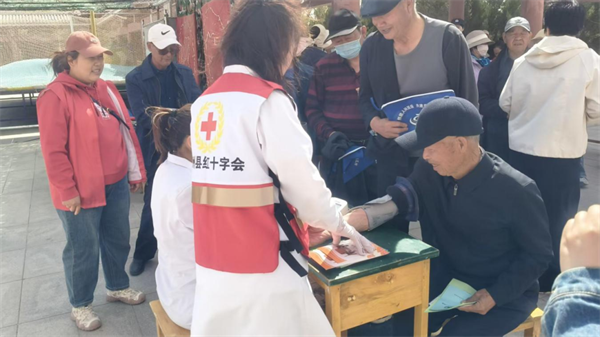 活动伊始,在社区网格长的带领下,居民们沿着公园步道开展健步走活动。大家结伴而行、谈笑风生,在春日美景中舒展身心、交流互动,既锻炼了身体,又增进了邻里情谊,现场氛围轻松愉悦。公园入口处的“健康守护角”格外热闹,社区卫生服务中心医护人员为老年居民提供免费测量血压、血糖服务,细致记录各项健康数据,结合老人身体状况讲解高血压、高血糖防控知识与日常饮食调理建议。