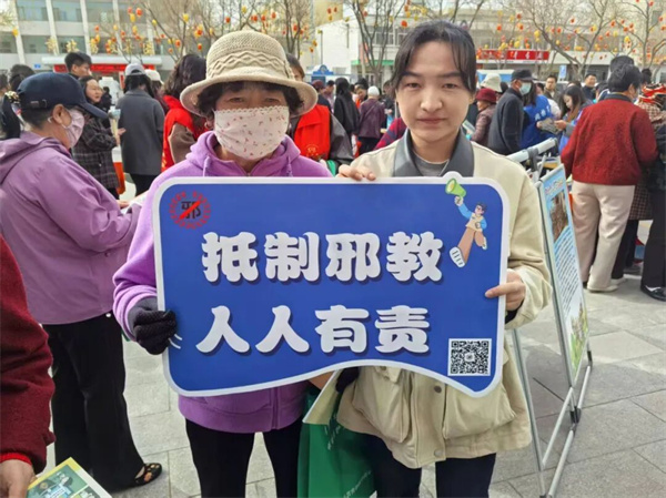 活动现场,工作人员通过设置宣传展台,向广大群众发放反邪教宣传标语纪念品、宣传彩页,引导群众扫描关注反邪防邪微信公众号,细致讲解反邪教相关知识、邪教的危害及识别技巧,教育引导广大群众认清邪教本质,自觉抵制各类邪教活动,主动远离邪教侵害,积极投身反邪教和主动创稳工作。
