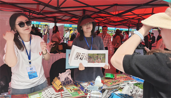 活动现场,彩旗飘扬,展位林立。精品图书展销区前,市民们或俯身翻阅,或低声交流;非遗技艺展示区里,剪纸、刻葫芦等传统手艺引来阵阵赞叹;文创产品互动区更是热闹非凡,年轻人围在摊位前,饶有兴致地体验着阅读与创意的碰撞。