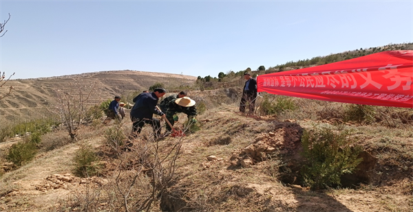 在牡丹园林区义务植树现场,“绿水青山就是金山银山”“植绿护绿,共建和谐生态环境”等一幅幅标语醒目亮眼、迎风飘扬。干部职工们热情高涨、分工协作,扶苗的扶苗,浇水的浇水,每一道工序都认真细致、规范有序,现场一派热火朝天的劳动景象。经过三个多小时的辛勤劳作,一排排侧柏、槐树、柳树整齐排列在山顶之上,迎风挺立,为春日的榆中两山增添了新的树种。