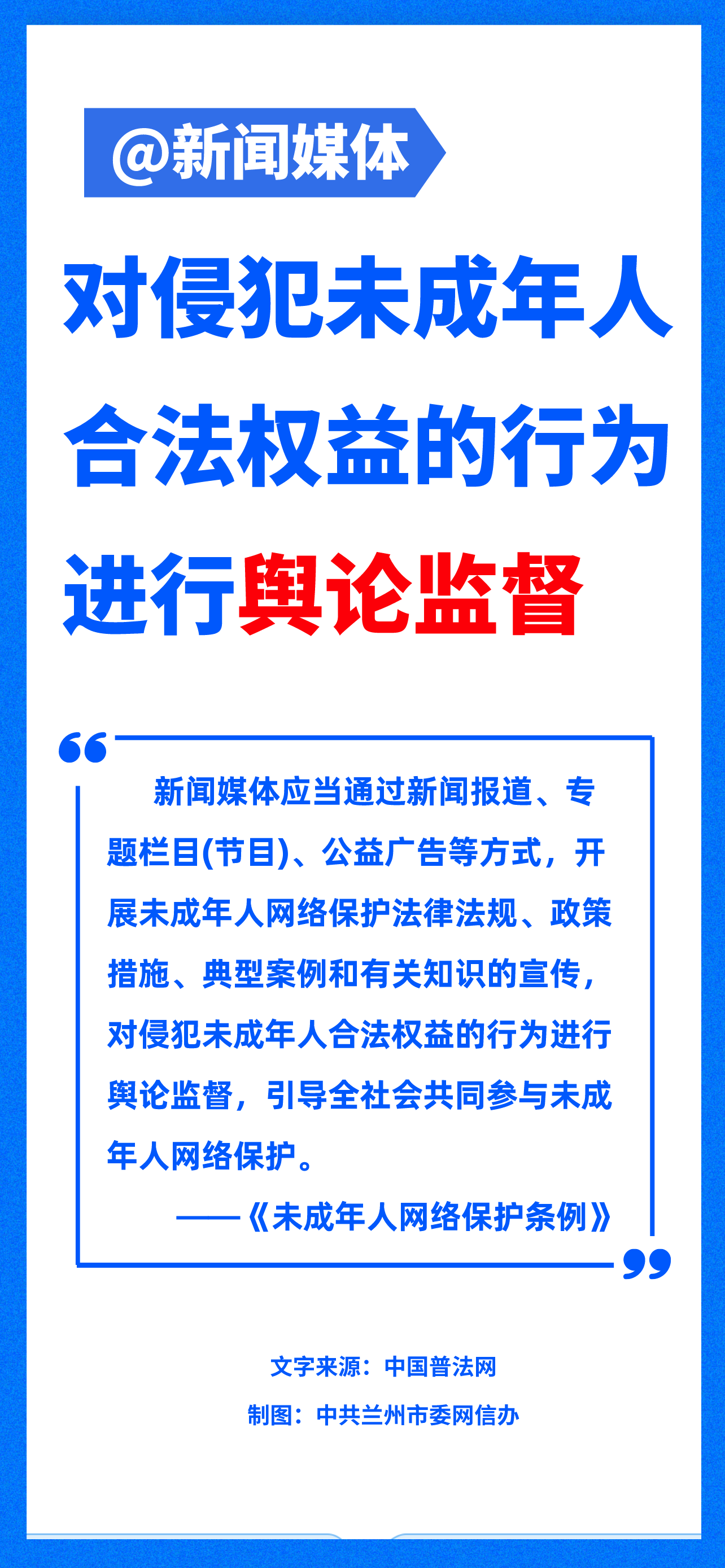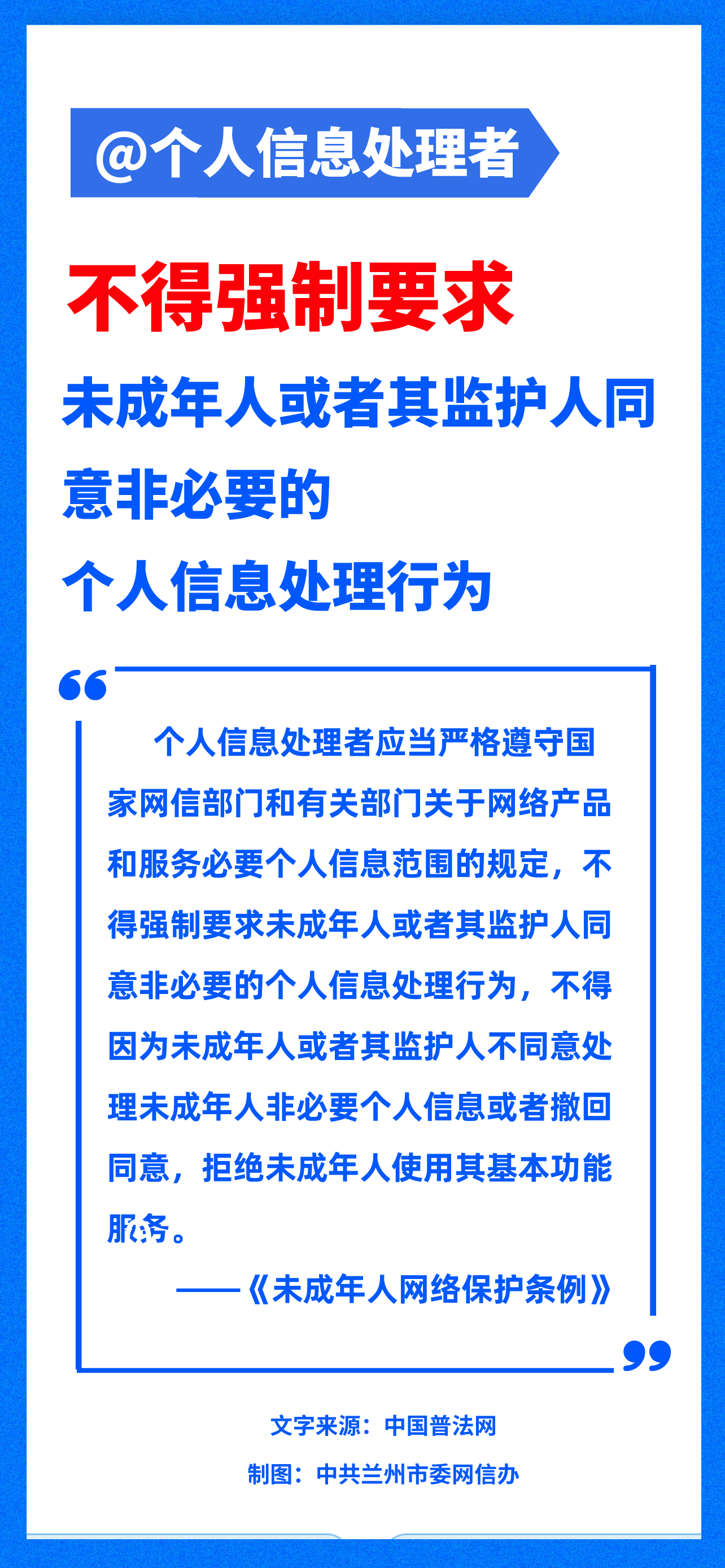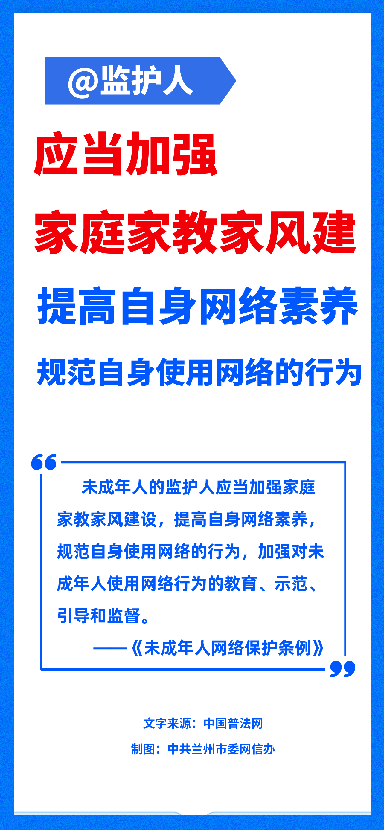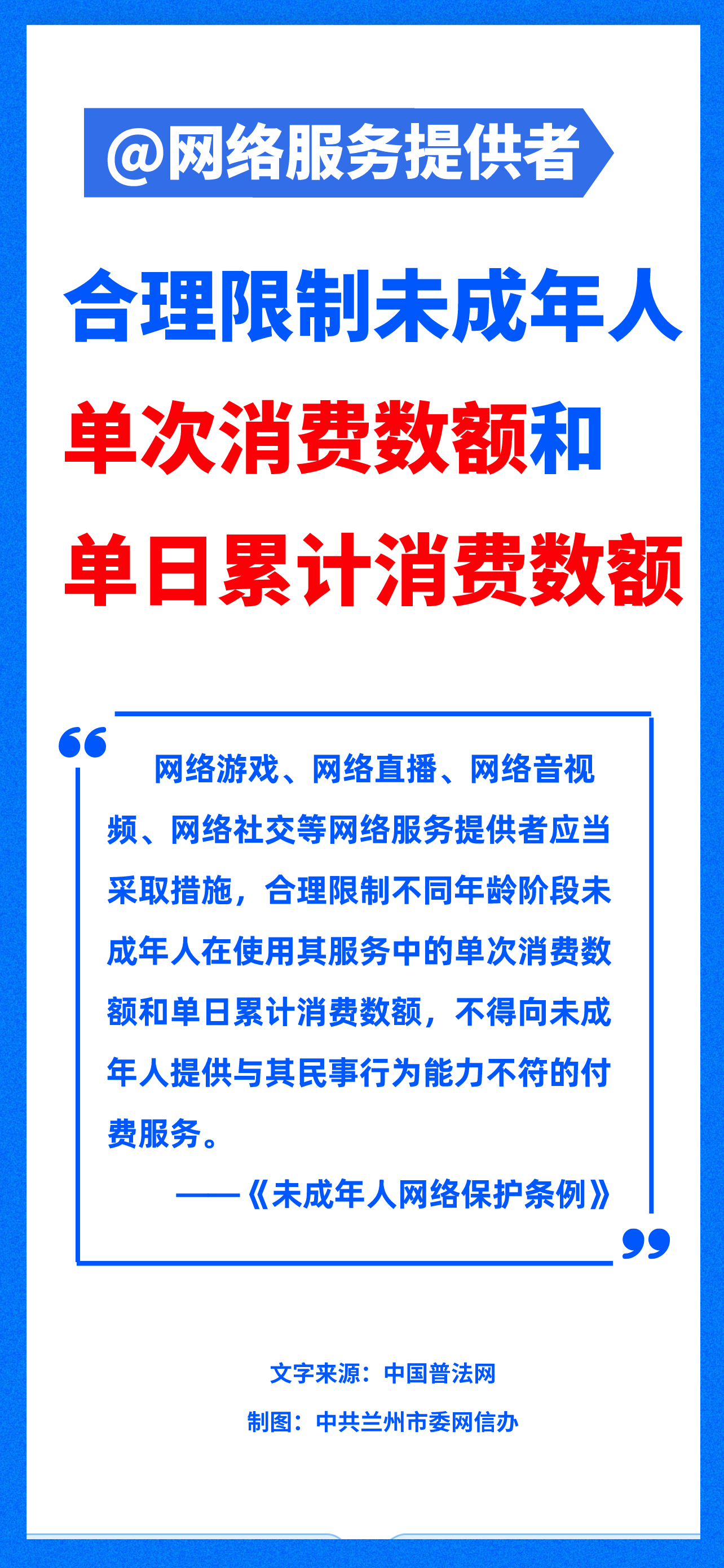 《未成年人网络保护条例》2023年10月24日发布, 将于2024年1月1日起施行。 该《条例》是我国出台的第一部专门性的未成年人网络保护综合立法, 旨在保障未成年人合法权益, 为未成年人网络保护提供有力的法治保障。 请看中共兰州市委网信办为您划重点, 速读未成年人网络保护新举措!