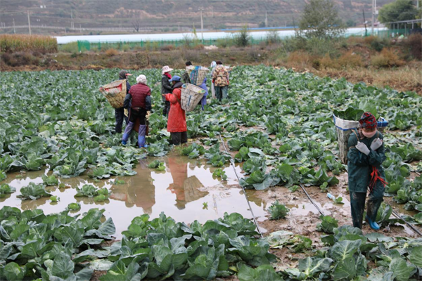 农户们抓紧抢收已成熟的作物