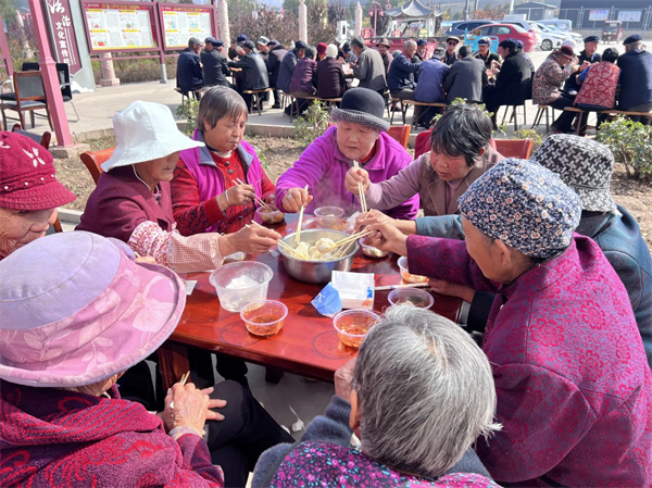 夏官营镇接驾咀村的重阳节同样热闹非凡。村新时代文明实践站牵头组织的爱老敬老志愿服务活动,把全村70周岁以上的老人都请到了村广场。志愿者们早早备好了面粉、馅料,和老人们一起包饺子。和面、擀皮、包馅,大家分工协作,不一会儿,一个个饱满的饺子就摆满了托盘。一锅锅热气腾腾的饺子出锅后,志愿者们化身“送餐员”,端着餐盘穿梭在人群中,将热饺子、热汤和小菜送到每位老人手中。老人们围坐在一起,吃着香喷喷的饺子,聊着家常,广场上满是饺子香和温情暖意。