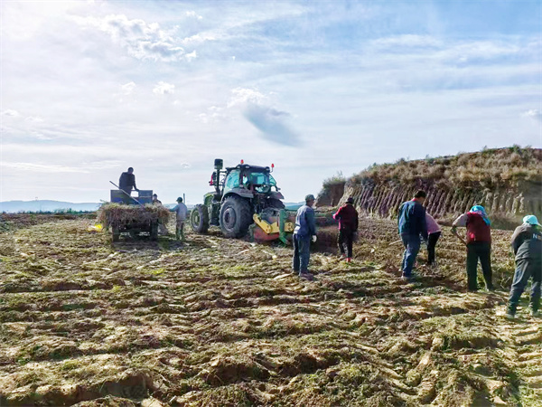 聚焦机械化采收核心需求,贡井镇精准调配300余台(套)农机设备,组建“农机服务队”分片开展作业,实现“收割—转运—入库”无缝衔接。针对中药材等特色作物采收难题,榆中新奥马铃薯种植专业合作社引进专用收获机械,优化作业流程,打造机械化起货、分拣、装车一体化作业模式。这种机械化采收方式不仅大幅提升了作物采收品质,日采收效率更是达到传统人工采收的20倍以上,有效摆脱了劳动力不足的困境。同时,镇上组建党员志愿服务队,为老弱病残等困难农户提供“一对一”助收服务,确保地里的作物应收尽收、颗粒归仓。