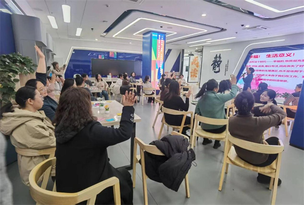 在专业社工的引导下,活动以轻松的情绪分享环节开启,女职工们通过互动卡片,真诚交流了在重建工作中兼顾职责与家庭的感受与挑战。随后,活动聚焦“实用心理调节技能”,通过情景体验、小组互动等形式,讲解了如何在高压工作中快速调整状态、进行自我关怀。现场还开展了“心理能量绘画”环节,让大家在色彩与表达中释放情绪,并获得针对性的心理疏导建议。