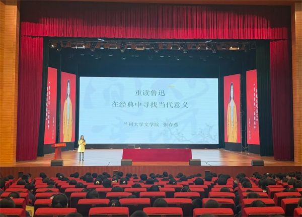 讲座现场,来自榆中县崇文实验中学的初高中师生代表,全县宣传思想文化领域干部以及广大文学爱好者齐聚一堂,共同聆听这场思想盛宴。张春燕围绕鲁迅经典作品,结合当代社会发展与现实生活,从文本解读、精神内涵、时代价值等多个维度进行阐释。她以深入浅出的语言、旁征博引的讲解,带领听众重温鲁迅笔下的经典篇章,剖析鲁迅精神的核心要义,挖掘经典文学跨越时空的当代意义。