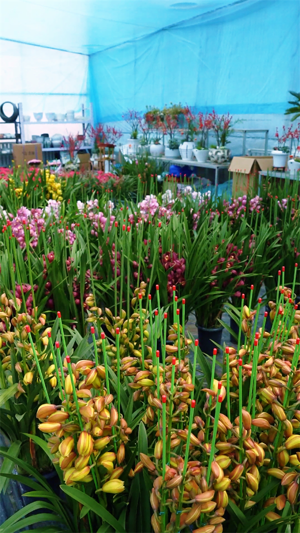 一盆花,一份盼。在这个辞旧迎新的时节,万泉岭花卉农业产业园以丰富的品种、充足的货源、便捷的交通,让新年“先开花”,用缤纷色彩与馥郁花香,陪伴大家度过一个喜庆祥和的团圆年。(牛文璇 图片/张文)