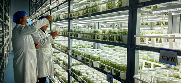 在百合种球脱毒组培中心,专家指导培育过程中的核心技术