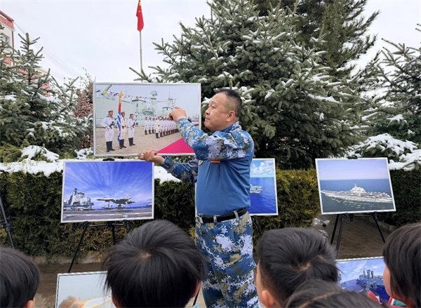 主题宣讲环节,林风谦结合自身数十年军旅生涯与国防工作一线实践经历,用鲜活真实的案例、质朴真挚的语言,生动讲述人民海军从无到有、从弱到强的光辉发展历程,深入阐释总体国家安全观的核心要义,分享新时代青年成长成才、报效祖国的励志故事。整场宣讲将国防理念、爱国情怀与青年责任担当有机融合,打破传统理论宣讲的枯燥模式,让抽象的国防知识变得生动可感、入脑入心。互动交流环节,同学们踊跃举手、积极提问,围绕海军日常训练、国防科普知识、青春理想追求等话题与主讲人面对面深入交流,现场氛围热烈浓厚,进一步拉近了青少年与国防事业的距离,让强国强军的种子在青少年心中生根发芽。