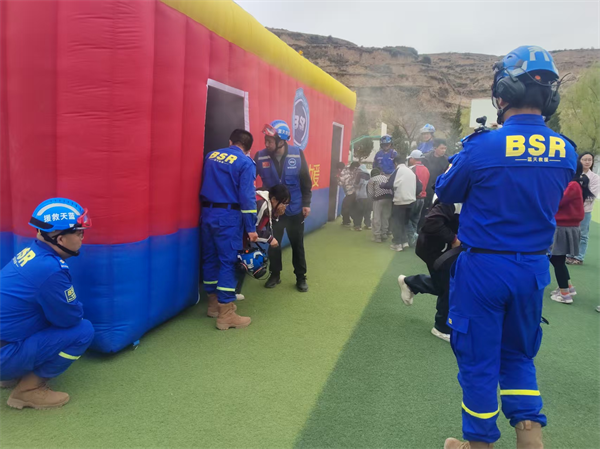 结合不同年龄段学生特点,三支救援队伍量身定制体验式教学。蓝天救援队搭建充气逃生帐篷,模拟浓烟黑暗环境,手把手指导学生掌握湿毛巾捂鼻、低姿前行等逃生技巧;先锋救援队用人体模型,现场演示心肺复苏、人工呼吸等急救操作,带教师生实操;山河救援队以操场为课堂,讲解地震避险、自救互救常识,耐心解答疑问。队员们不畏奔波、坚守一线,从场地布置到实操带教全程尽责,用付出传递安全知识。