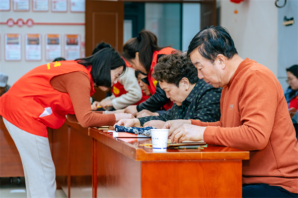 小小的竹篾在他们的努力下,渐渐变成一幅幅层次分明且独一无二的艺术品。有寓意吉祥的“狮狮”如意图案、有活泼可爱的瑞兔造型、有威严肃穆的华表祥云图案,还有登高祈福的茱萸纹样,老人们互相展示作品,脸上洋溢着幸福的笑容。
