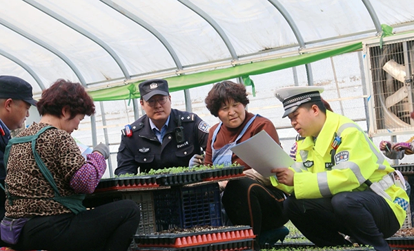 走进温暖湿润的育苗大棚,嫩绿的芹菜苗整齐排列、长势喜人。“大姐,买种子化肥一定要通过正规渠道,现在网上有一些农资诈骗专盯咱们庄稼人,千万别轻信‘朋友圈’里的低价兜售。”大家俯下身子、蹲在劳作的农户身边,一边帮忙一边与农户交流菜苗生长情况,询问种植技术、水肥管理与生产需求,同时,结合春耕生产特点,用通俗易懂的语言开展安全宣传,重点讲解大棚内用火用电安全、农用物资防盗防潮、农用车交通安全等知识,提醒农户守好“钱袋子”,把平安知识送到田间地头,把暖心服务送到群众心坎上。
