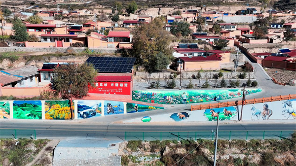 跟随镜头走进榆中县“秀美兴隆”“醉美马坡”乡村振兴示范带,首先被3D墙画给吸引住了,大约6800平方米的手绘创作,给兴隆山村披上了一层鲜亮的文化外衣,既有美化效果,又有时代风采。