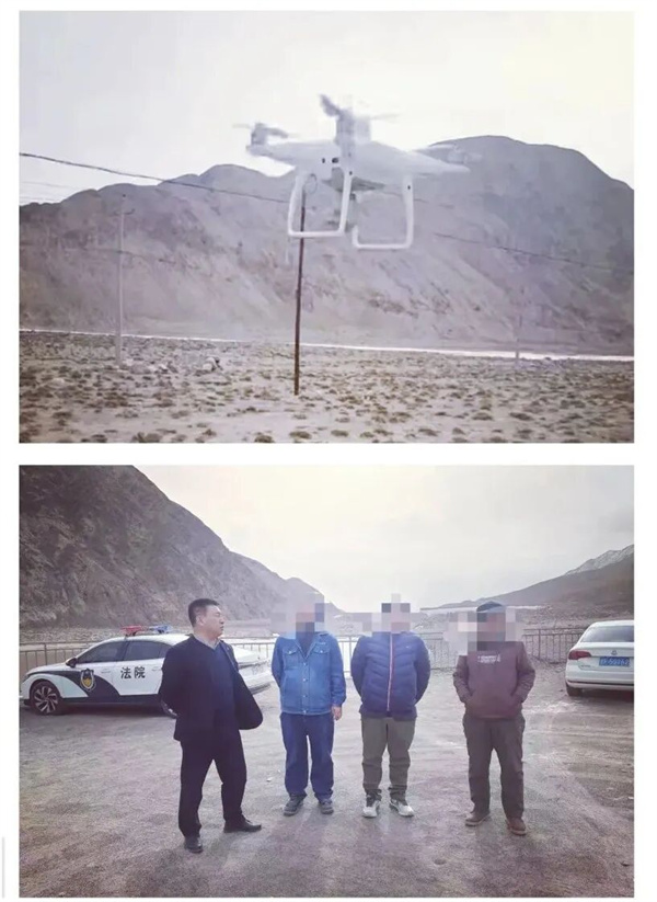 勘验当天,山间气温偏低,狂风不止,不仅体感寒冷刺骨,复杂气流也给户外作业带来极大挑战。加之涉案草场范围广、地形起伏大,双方当事人对草场边界、占用面积争议大、分歧突出,为确保勘验结果客观公正,经得起检验,本次工作采用“肃州区法院主导+双方当事人当场见证+第三方专业测量+无人机航空测绘”一体化模式。现场全程公开透明,面对面沟通答疑,最大程度保障双方知情权、参与权与监督权。